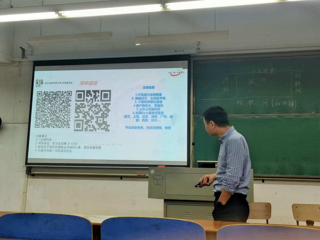 达梦、百家云、上海汉得等5家IT企业负责人通过视频宣传、PPT展示以及面对面交流的方式,讲解当前主流市场IT技术发展的技术,以及学习方向、后期就业学生需要关注公司类型、职业规划、公司规模和行业, 并就公司概况、工作环境、培训机制、买足球等学生关心的问题做了详细的介绍,与此同时,同学们积极咨询相关岗位薪资以及职业前景,解决了自身在实习、求职方面的诸多疑虑。