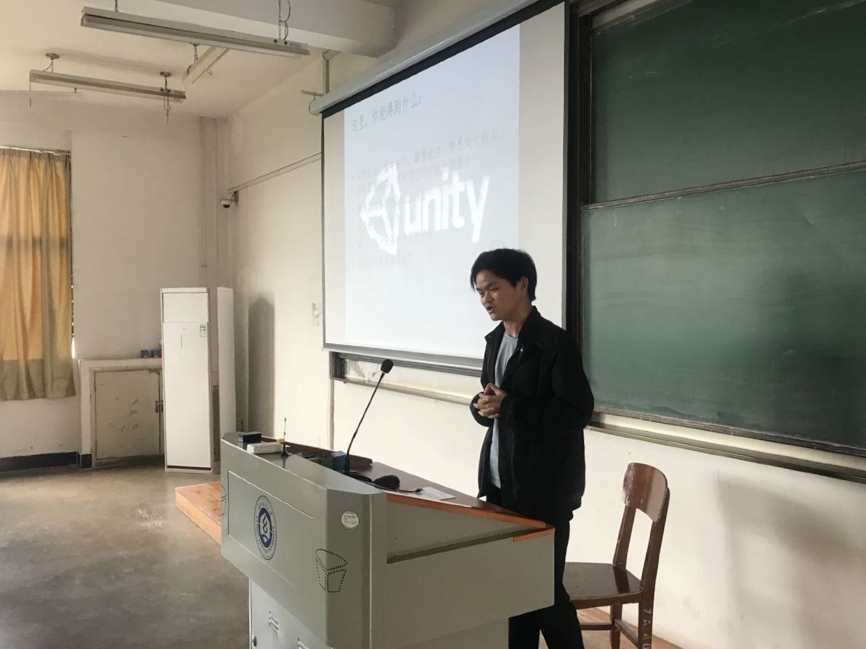 来自买足球 大一的胡宗旭对3D游戏与虚拟现实开发俱乐部进行介绍。在讲解完加入俱乐部带来的一系列正面影响后,胡宗旭展示了有关unity的各类模型图与众多学习资源,并展示了多款有关VR的体验设备。同时,他向同学们介绍了有关社团的基本活动安排和社员要求,讲解了社团的相关情况。