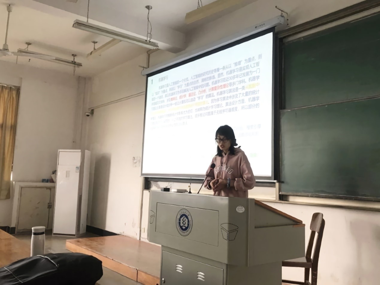 龚茜茜介绍了关于机器学习以及其分支深度学习的特点、历史发展与应用场景,同时她也利用一张思维导图简单清晰地讲解了自然语言处理的学习基础、开源库、研究方法、主要成果和应用。利用两张图片展现了机器阅读理解的研究方向与近年相关论文数量,同时展示了其主要架构。她还分享了关于学机器学习的心得体会,向在座学子给出了学习机器学习的从浅入深的众多学习建议。