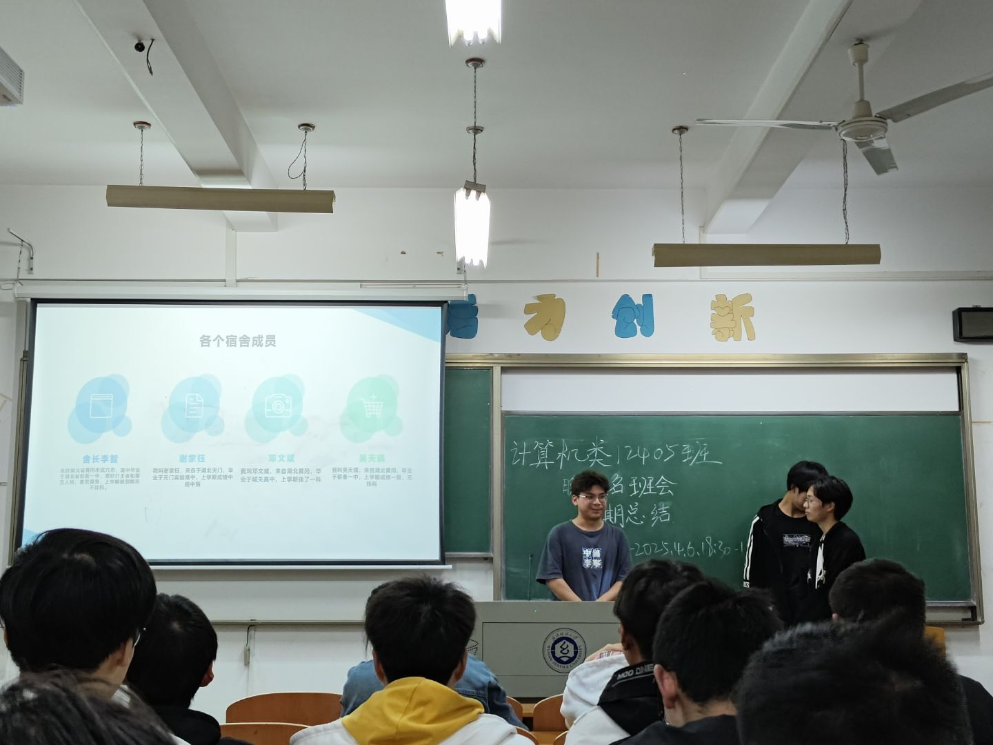 向涛最后进行总结发言,他对本次班会给予了充分肯定,表示这次学期小结班意义重大。通过以宿舍为单位的汇报,大家清晰地看到了彼此的优势与不足。希望同学凝聚力量,寝室同学间互帮互助,在学业上勇攀高峰,在校园生活中收获成长与快乐。不仅要在专业学习上取得优异成绩,还要积极参与各类学科竞赛、实践活动,提升自身综合素养,成为计算机与人工智能领域的优秀人才。