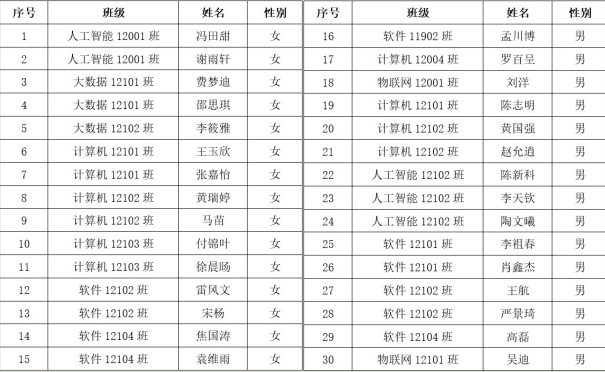 对所有同学的复试成绩、在校表现以及综合实力的评估,将聘用以下30名同学为2022级副班主任,聘期为一学年。具体名单如下: