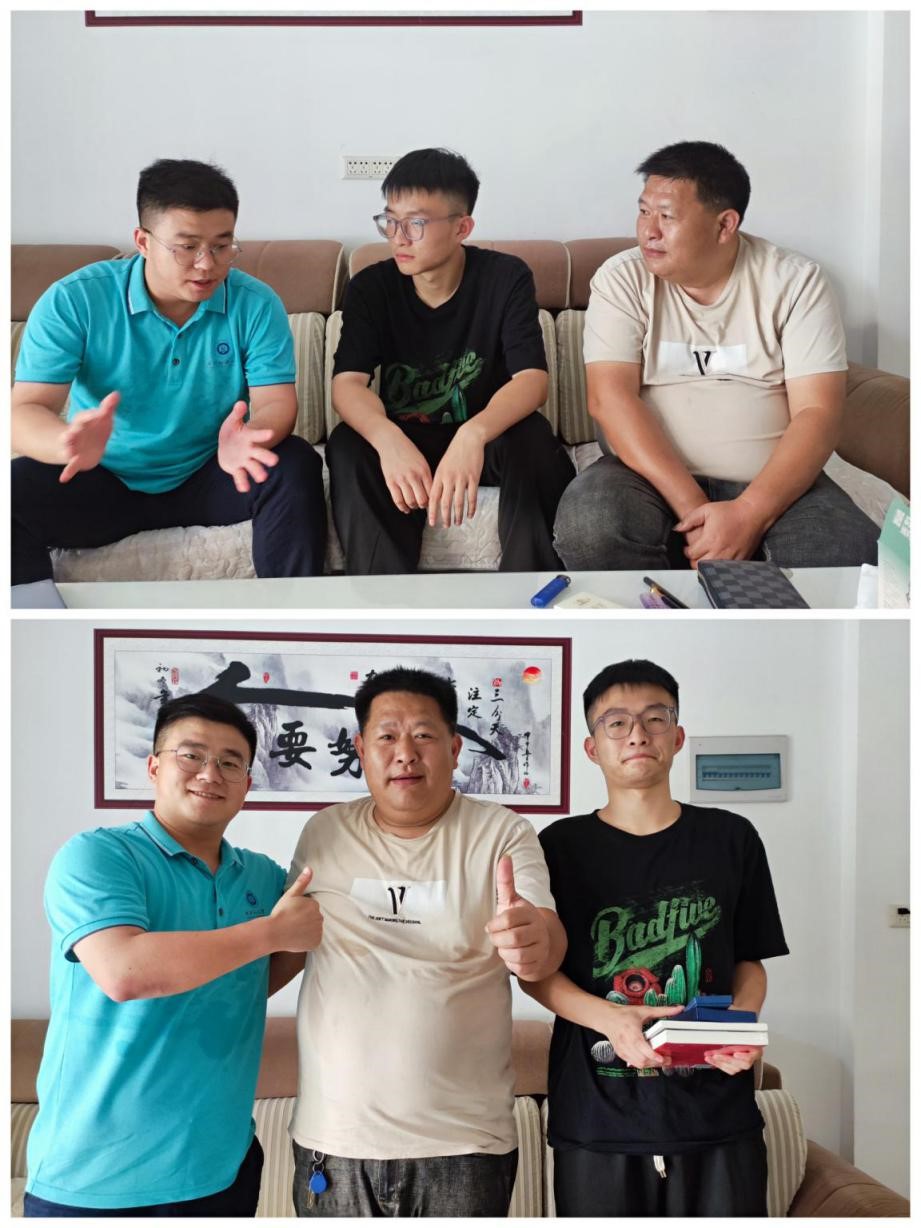 此次家访,四位老师共深入了四名学生家庭,通过与学生各家庭成员的面对面沟通交流,全面了解了学生的成长环境、生活表现和家庭状况以及教育状况,并及时把学生在学校的学习情况和生活情况反馈给家长。沟通过程中,家长们提出了很多教育中的困惑,比如“如何提高孩子的就业竞争力”,“如何让孩子有个充实的暑假”等,老师们都一一做了解答,并特别提醒家长注意学生在家的假期安全。同时,老师们还给家里带去了学校校徽和校牌、水杯、T恤衫等慰问品,也为学生送上了《习近平与大学生朋友们》以及买足球