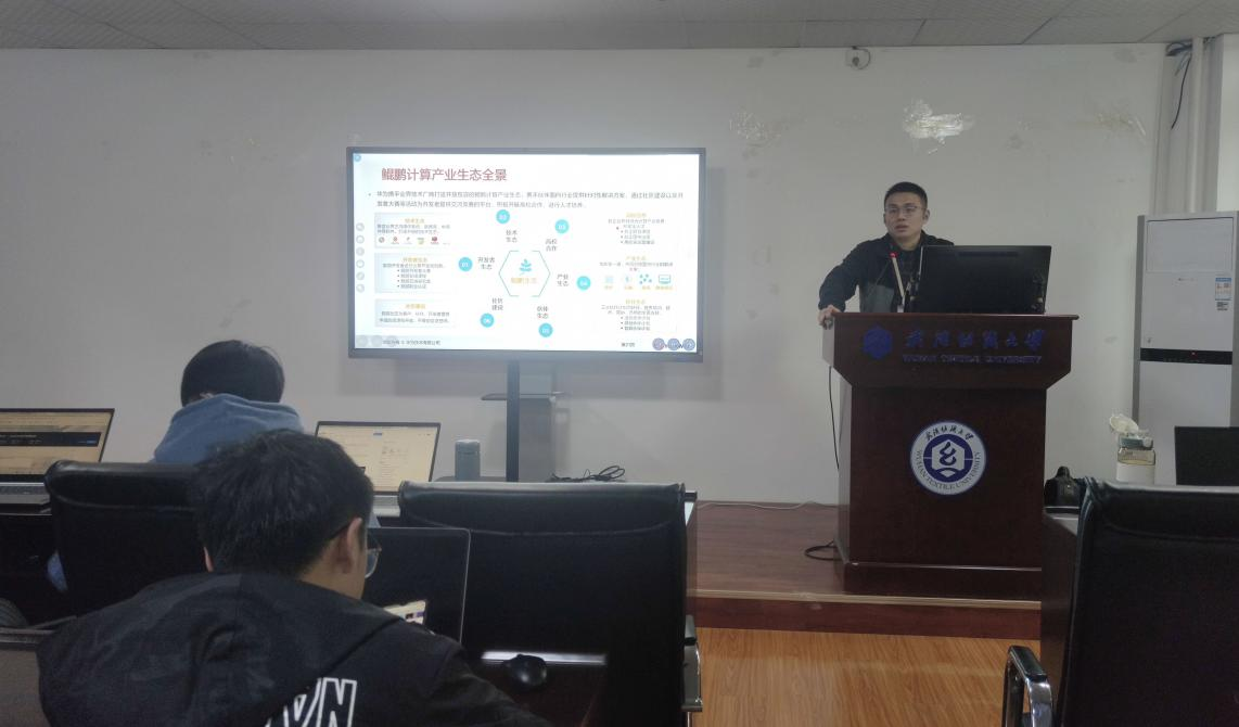 活动中,主讲人祁元首先介绍了数字经济时代战略,带领同学们了解全球IT计算产业架构,分析对比国内外数字经济产业,了解国家数字产业战略。接着,祁元对华为鲲鹏生态体系作了全面介绍,对鲲鹏云服务架构优缺点进行了分析,还介绍了鲲鹏云化背景与云化架构,openEuler开源操作系统的发展和特性等内容。此外,祁元重点强调了华为鲲鹏平台应用移植的相关知识,使同学们了解鲲鹏底座的操作指令与X86计算指令的的差异,了解掌握X86向ARM迁移的策略与过程。最后,祁元向同学们介绍了华为鲲鹏微认证,基于鲲鹏沙箱的认证实践,以实验的形式帮助学员掌握鲲鹏基础工具。