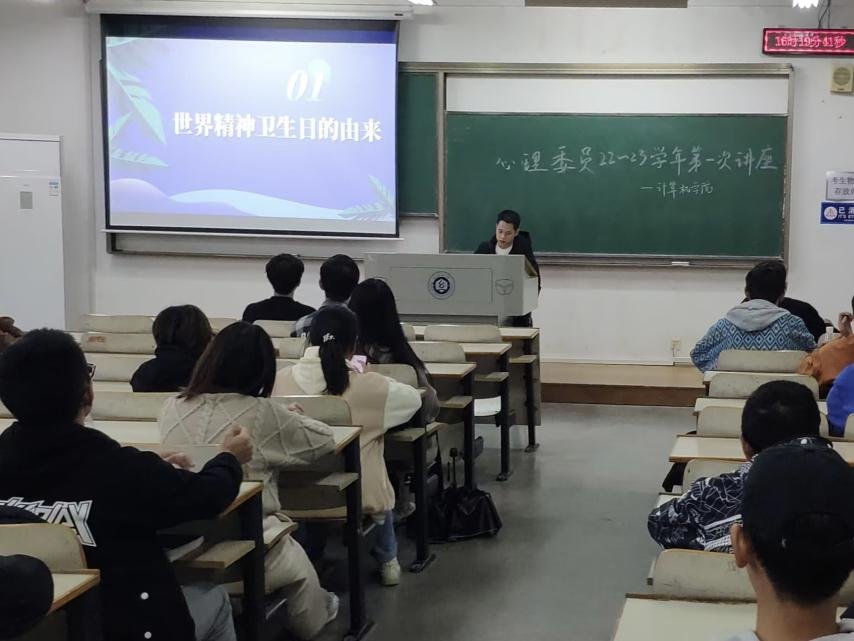 为进一步加强大学生心理健康教育,在学生中营造一种学习、普及、宣传心理健康知识,关心、理解、帮助有心理问题困扰的同学,共同创建促进大学生心理健康成长的良好氛围,促使大学生心理健康成长。我院于10月27日下午,在教学楼03-314举行了以“世界精神卫生日”为主题的心理健康讲座,2020级辅导员向孙颜老师作专题报告,院团委学生会i心苑组织2021级与2022级各班心理委员参加。