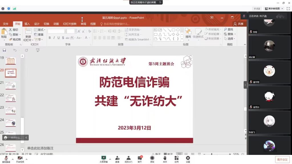 班主任以研究具体案例的形式来讲述五大防诈骗要点,强调了电信诈骗的危害,并向同学们传授了遭遇电信网络诈骗后的应急措施,增强了同学们的安全意识和法制观念,提高了同学们防范电信诈骗的意识和能力。此外班主任还提醒同学们合理安排作息时间,加强体育锻炼,培养良好心态,养成健康的生活卫生习惯。