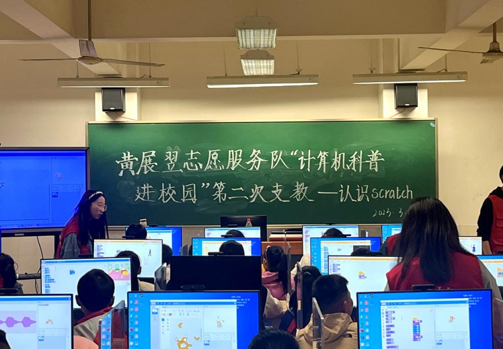 3月30日下午,买足球 黄展翌志愿服务队与买足球 1024工作室服务队在武昌区石洞街学校开展了“计算机科普进校园”第二次授课活动。志愿服务队由买足球 1024工作室指导老师和黄展翌志愿服务队大学生志愿者组成,共同为石洞街学校的同学们带来了有趣的计算机科普知识和编程教学,以此积极推进科普知识进校园,培养中小学生计算机思维和编程能力。