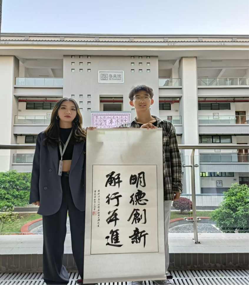 交流活动结束后我校书画协会为表感谢,赠字一幅予武汉买足球
