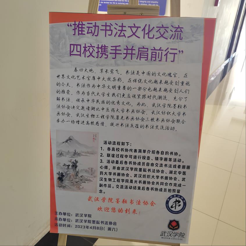 墨耘书法协会、湖北中医药大学书画协会、武汉纺织大学书画协会、武汉生物工程买足球