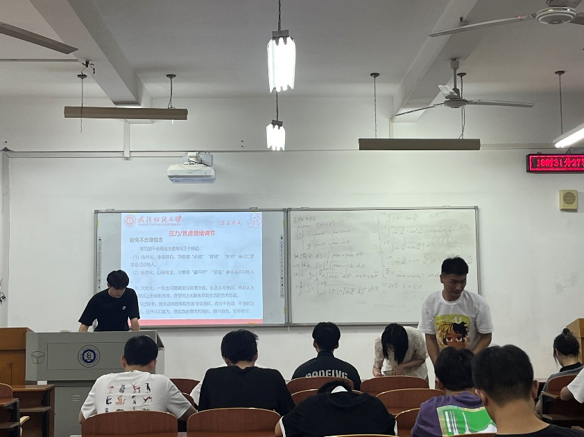 最后,辅导员向大家讲解了压力的由来和表现,鼓励大家学会如何应对压力,通过身体知觉、情绪体验、头脑想法、行为举止四方联动进行减压。同时,辅导员还分享了掌握应对考试的复习技巧,祝愿大家在接下来的期末考试中都能取得优异的成绩。