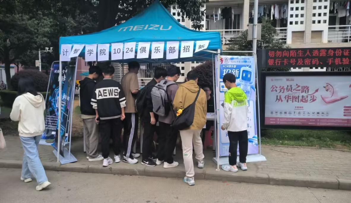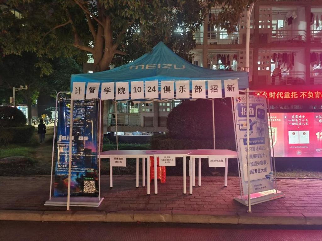 10月11日晚,1024工作室与学术科技部一同开始利用提前准备的物资布置招新场所,支起遮阳的帐篷,将事先准备好的海报挂起,并在帐篷、桌子上张贴明显的招新字报。检查完毕后,摆点的准备工作顺利完成。10月12日及13日全天,1024工作室各俱乐部派出值班人员在招新咨询现场通过宣传各自俱乐部的特点以及俱乐部对应的计算机专业竞赛等信息,为同学们提出计算机专业的学习建议和指导。本次线下摆点招新活动吸引、鼓励了许多2023级新生加入1024俱乐部,并大大激发了他们对于ACM、网络安全、U3D虚拟现实技术等方面的兴趣。