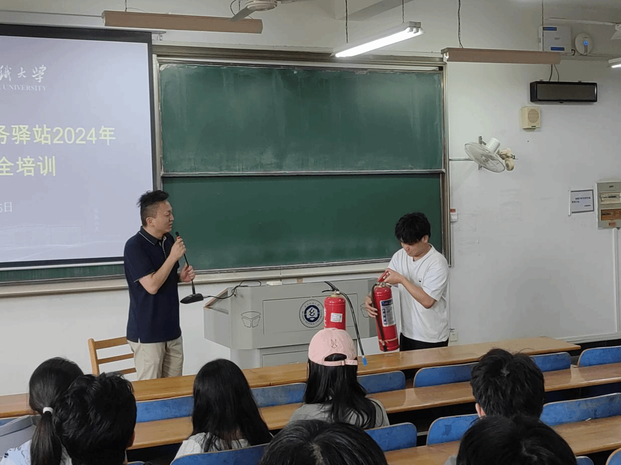 在讲解了火灾的危害后,陈斌老师开始详细介绍失火逃生、失火应对准则、逃生事项以及灭火器使用步骤——“提拔握压”。他强调,在火灾发生时,保持冷静、迅速报警、寻找安全出口是逃生的关键。同时,他也提醒大家,在逃生过程中要注意避免吸入有毒烟雾,尽量用湿毛巾捂住口鼻。为了让大家更好地掌握灭火器使用方法,陈斌老师还特意准备了灭火器供同学们实践。演讲老师邀请同学上台操作,通过实际操作加深了对灭火器使用步骤的印象。