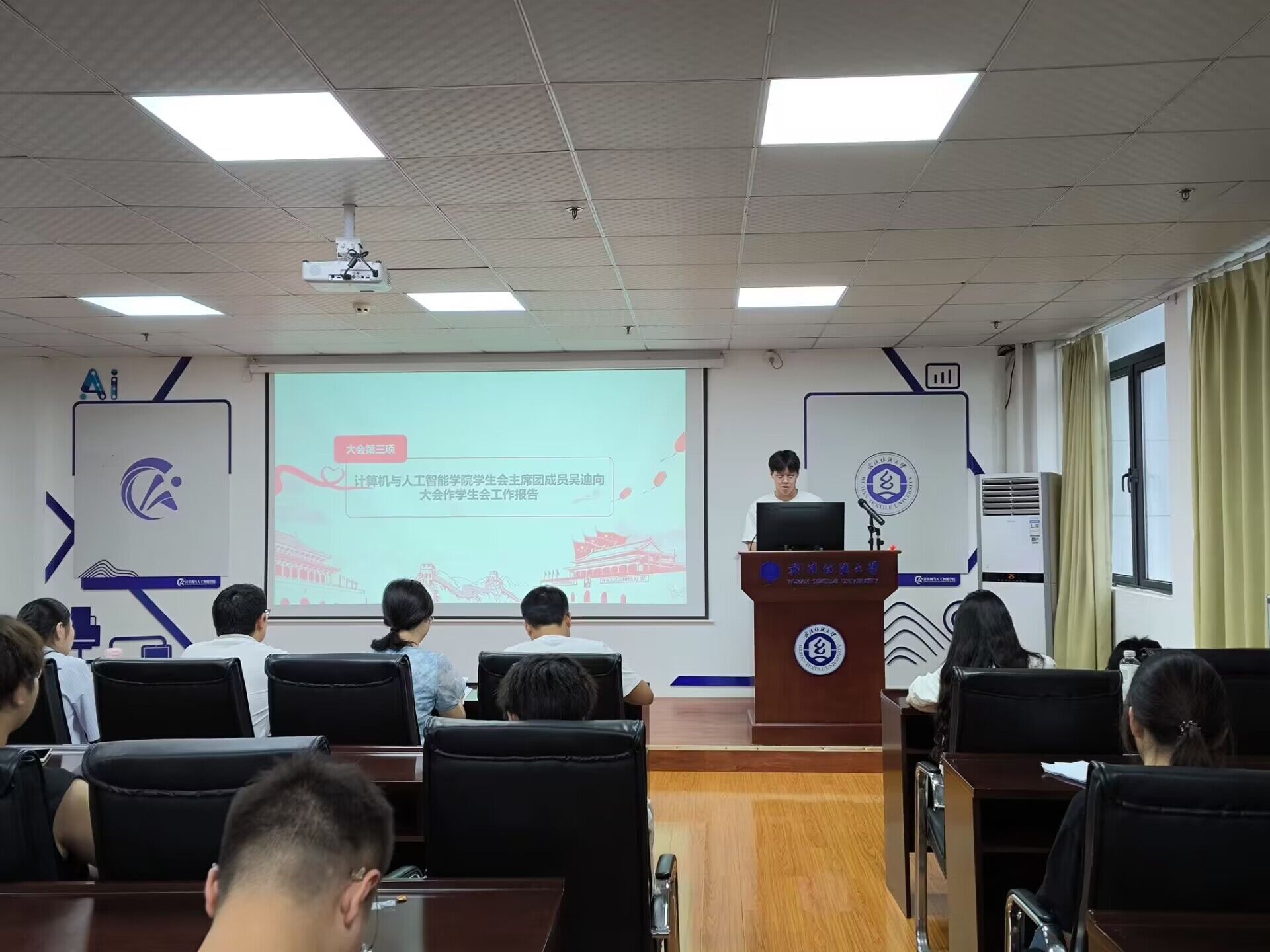 团委副书记李筱雅首先汇报了团委过去一年的工作成果及未来展望。紧接着,院学生会主席团成员吴迪就学生工作进行了详细汇报,主要陈述买足球