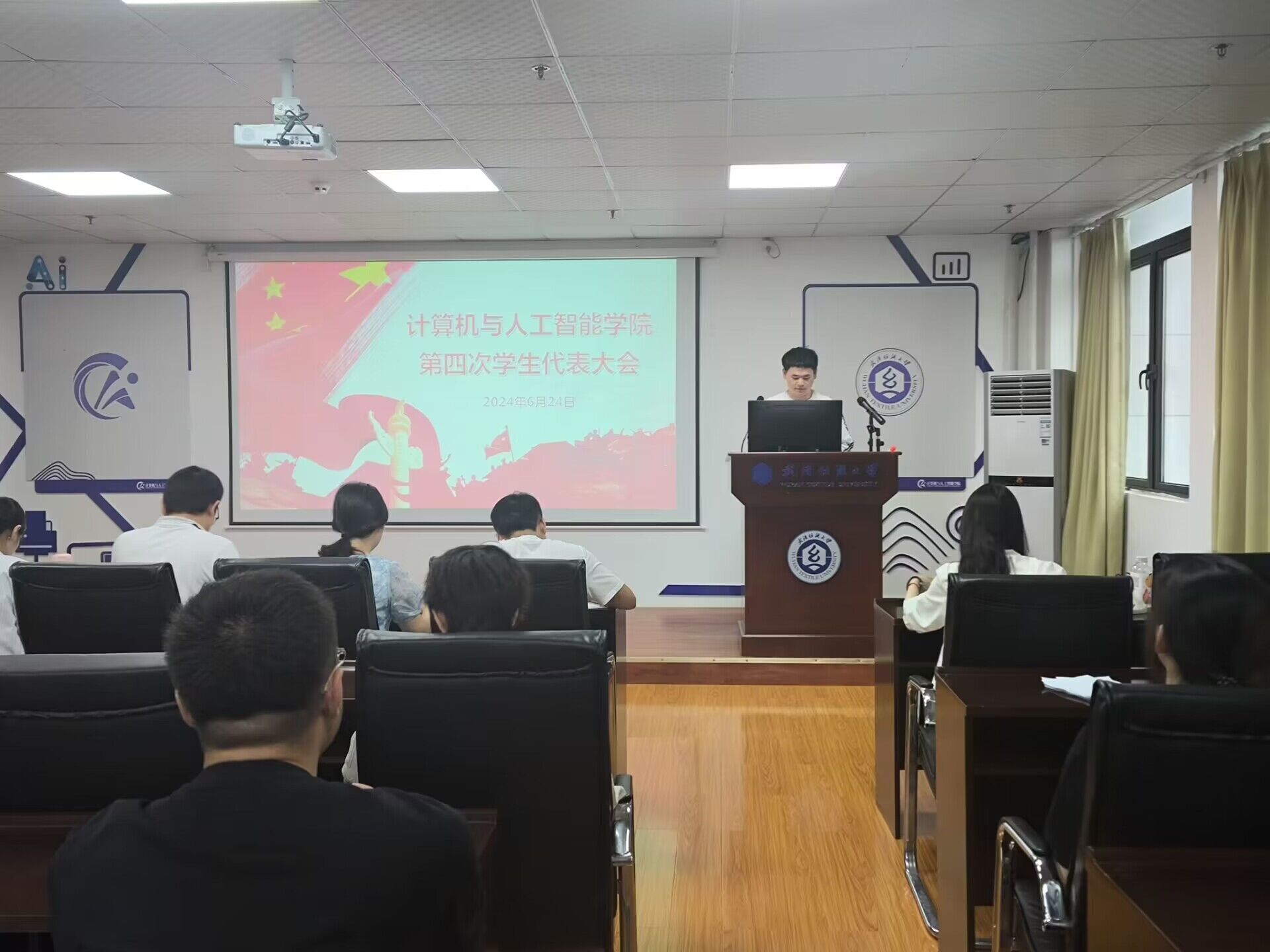 6月24日,买足球 第四次学生代表大会在崇真楼(南楼)A4030报告厅召开。买足球 党委副书记向涛,买足球 团委书记喻仪,买足球 团委指导老师易凡,买足球 1024工作室指导老师谢瑞清,及买足球 团委学生会主要成员参与了本次会议。参与本次大会的所有学生代表均根据相关要求选举产生,大会由学生会主席团成员李祖春主持。