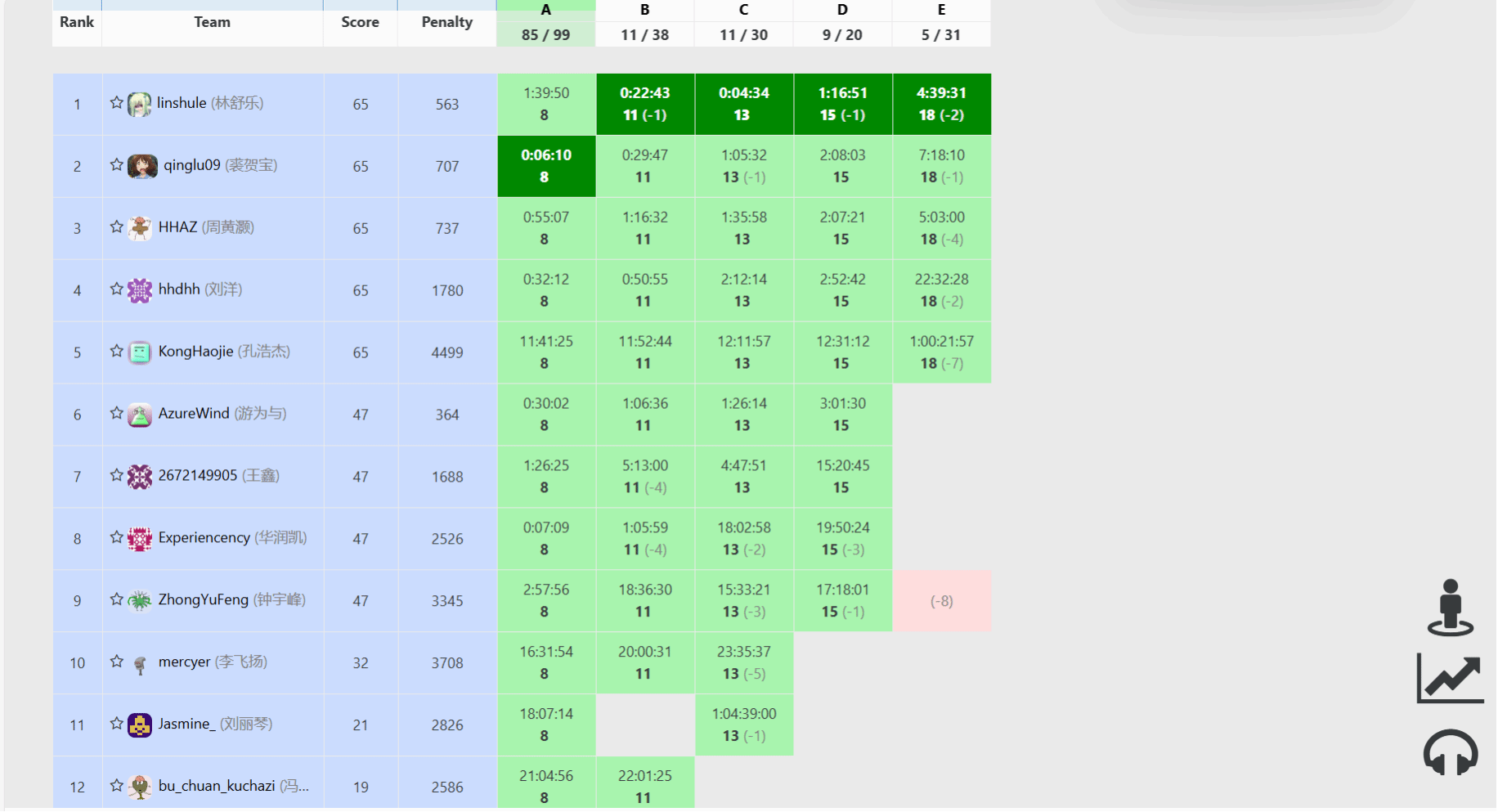 5月13日至23日,十天的线上打卡活动开展得热火朝天。同学们表现出色,有的同学每日清晨便投身学习,迅速高效完成打卡任务,思路清晰,解法新颖;有的同学遇到难题时,积极在群里与其他同学热烈讨论,携手攻克难关,充分展现团结协作精神;还有的同学不仅按时完成打卡,还对算法进行优化改进,力求完美。贪心算法、前缀和、二分查找、深度优先搜索与广度优先搜索、动态规划等,每次挑战都是成长的契机。参赛者们在知识的征途上奋勇前行,不断突破自我,彰显出惊人的学习能力和解决问题的高超技巧。