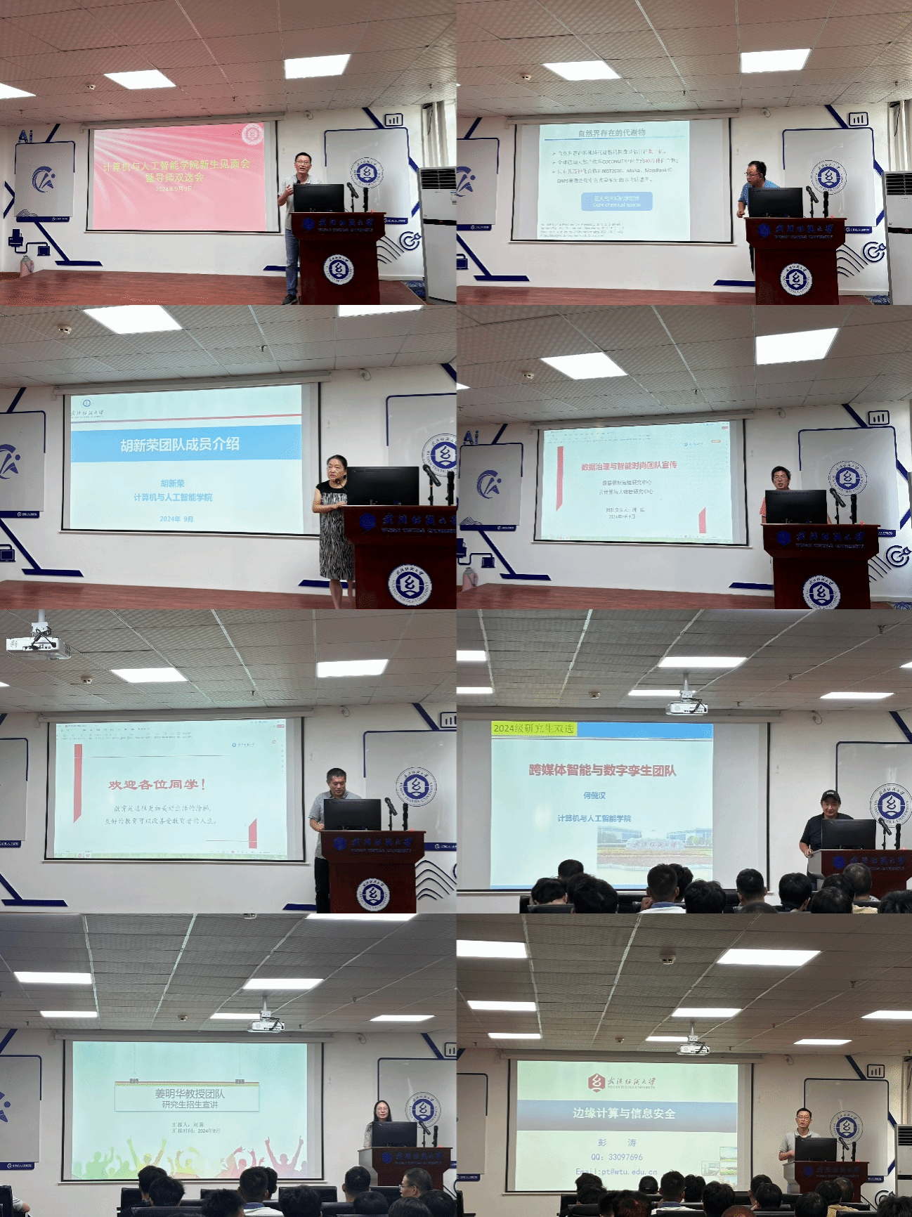 在双选会环节中,共有6个团队的7名老师代表发言。每位老师详细介绍了自己团队的研究方向和目前正在进行的项目,并分享了团队的研究氛围。