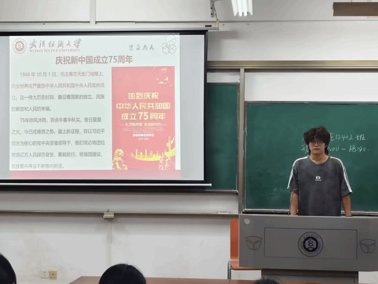 班会开始前,辅导员清点学生的参会情况,对未参会学生逐一排查确认,确保学生安全。班会上,班主任先介绍了国庆的由来,强调了国庆深刻的历史意义,又以“七十五载长歌奋进,赓续前行再奏华章”为切入点,回顾了随新中国成立七十五周年所发生的大事件,介绍了新中国发展的伟大成就,丰富了学生的知识积累,进一步激发了同学们的爱国热情,引发进一步思考,反思新青年的发展责任。