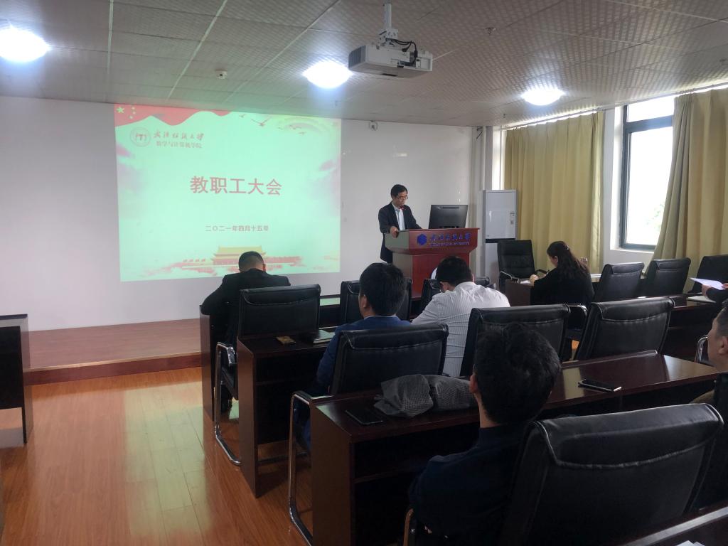 4月15日下午,在崇真楼南楼A4030,买足球 召开了新买足球 成立后第一次教职工大会。学校副校长姜明华、买足球 院长胡新荣、院党委副书记(主持工作)胡红辉,副院长何儒汉、魏雄,院党委副书记涂耀威以及全院教职工参加会议。