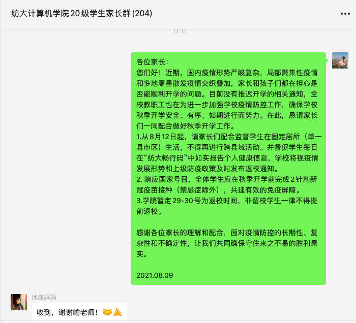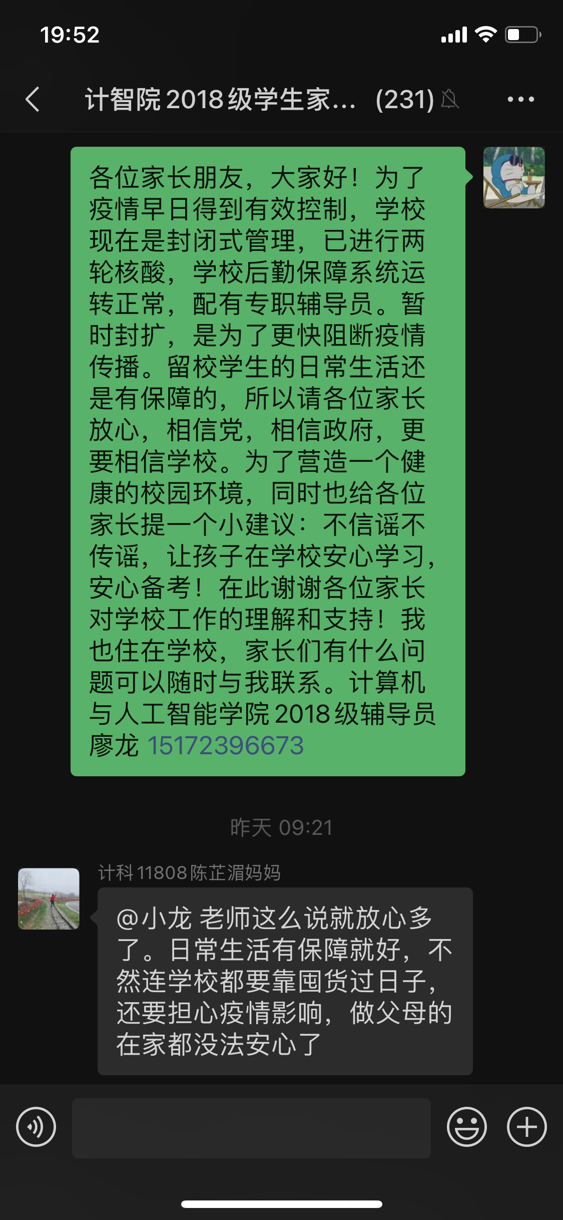 为最短时间内切断疫情传播,保障人民群众生命安全和身体健康,根据江夏区新冠肺炎疫情防控指挥部2021年1号通知,包括我校阳光校区在内的江夏区有关区域合围范围内自8月7日19时起,实施封控管理措施。学校疫情防控指挥部学生工作组立即作出反应,同日发布了《关于做好封控管理状态下学生管理工作的通知》。