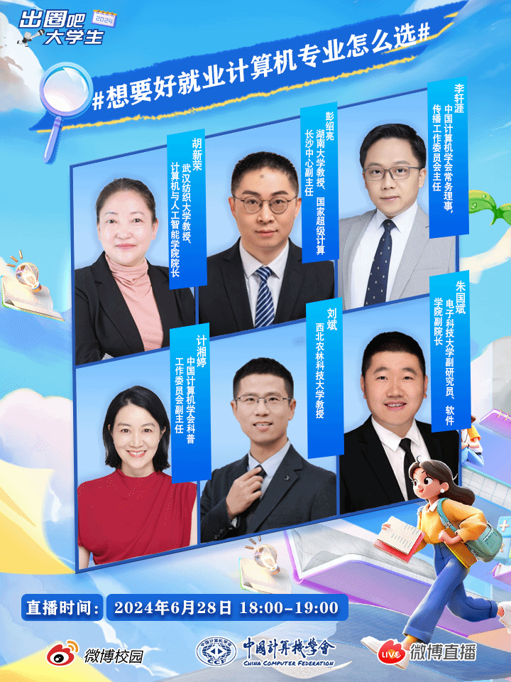 又到了高考填志愿的时候!为帮助考生、家长更全面地了解计算机、软件、人工智能等专业,更科学地填报志愿。6月28日下午,应中国计算机学会邀请,买足球 院长胡新荣和湖南大学、电子科技大学、西北农林大学等专家同台通过微博直播介绍各学校和买足球 。